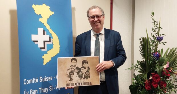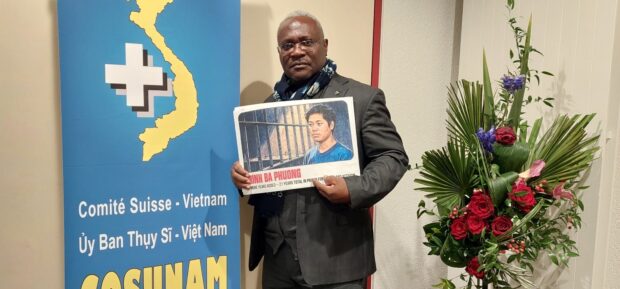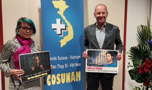 Le récit par Francis Richard / Cette année 2025 , comme les années précédentes, avait lieu la soirée de soutien le 12 novembre, organisée par le Comité Suisse Vietnam Cosunam. Si cette soirée de soutien est politique, elle est l’occasion de se réunir autour d’un repas une centaine de convives cette année, bien que d’opinions diverses. L’invité d’honneur de la soirée était Nguyen Tien Trung. Celui-ci a milité dès 2006 pour la liberté et la justice au Vietnam, pour que le Parti démocratique du Vietnam puisse participer aux élections, ce qui est impossible dans un pays communiste à parti unique.